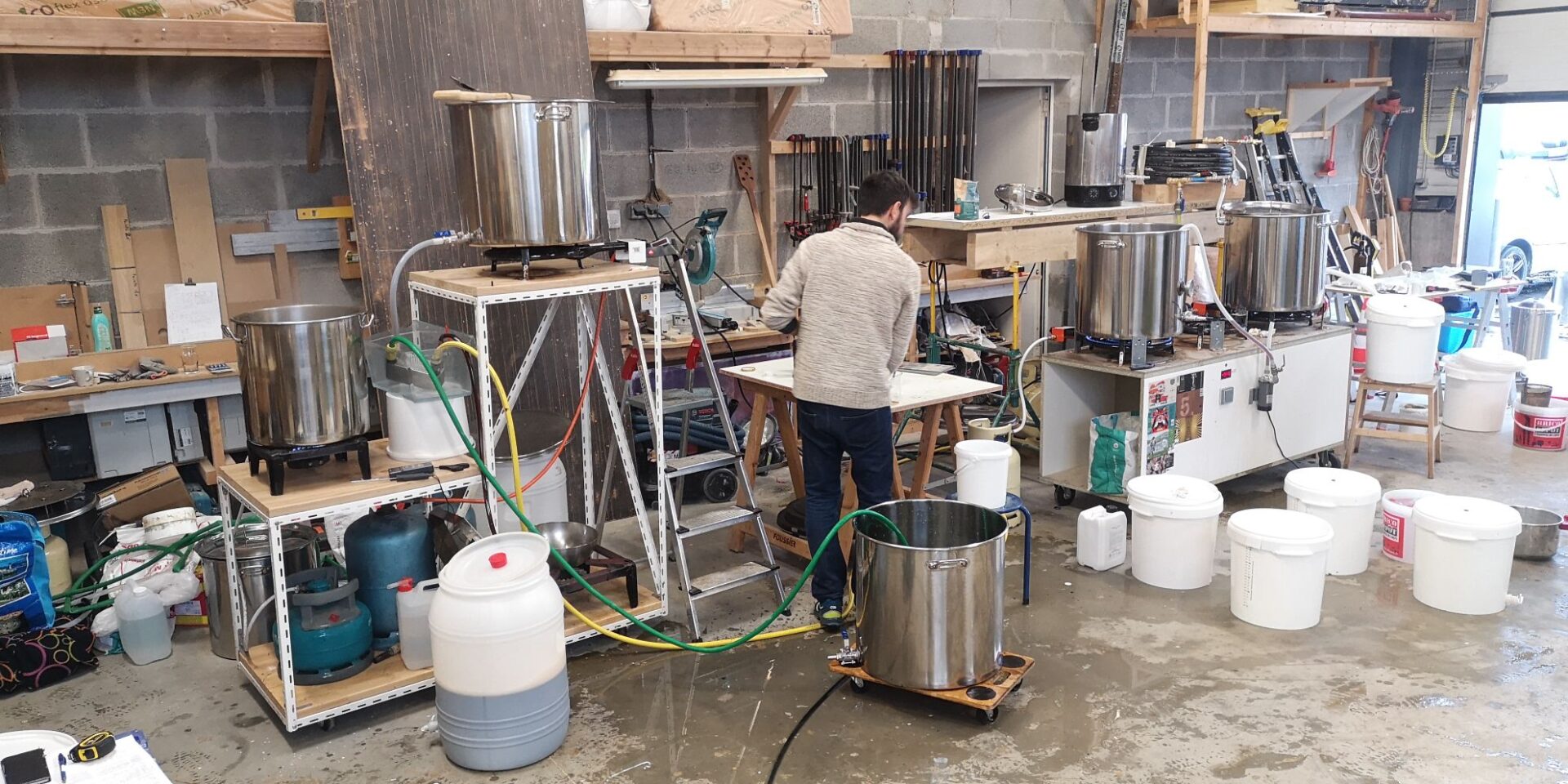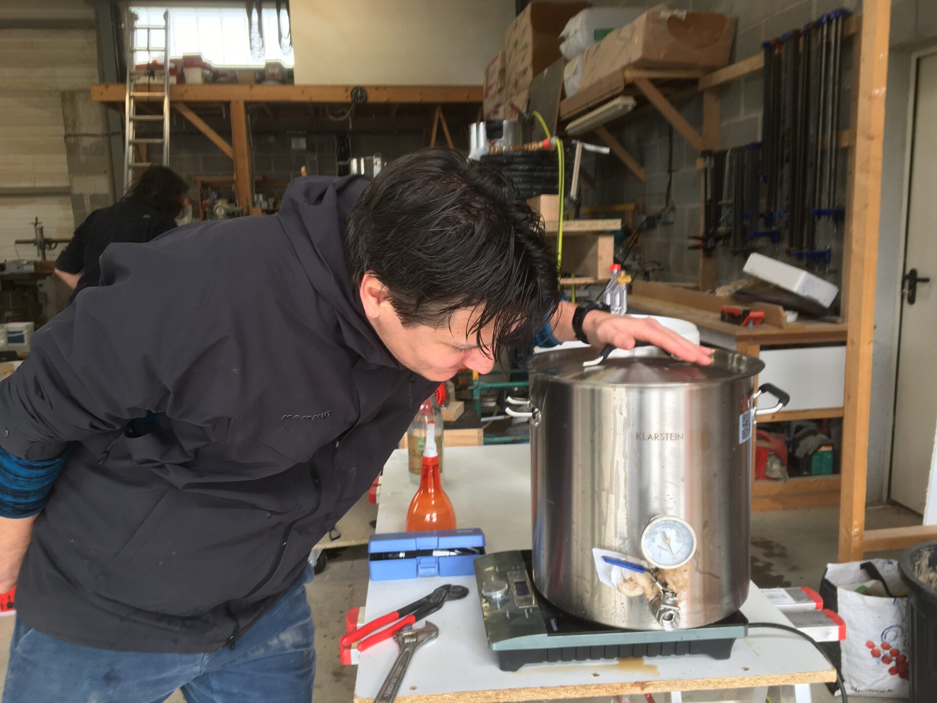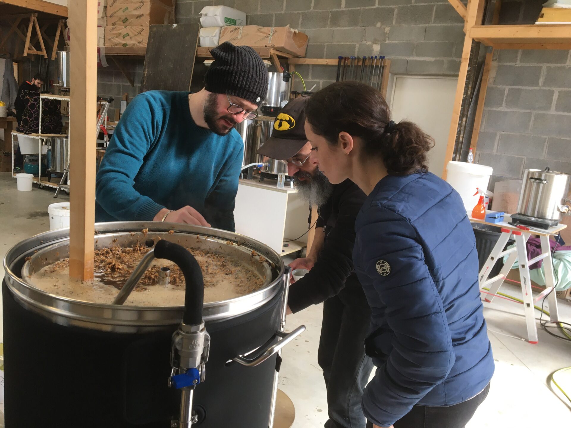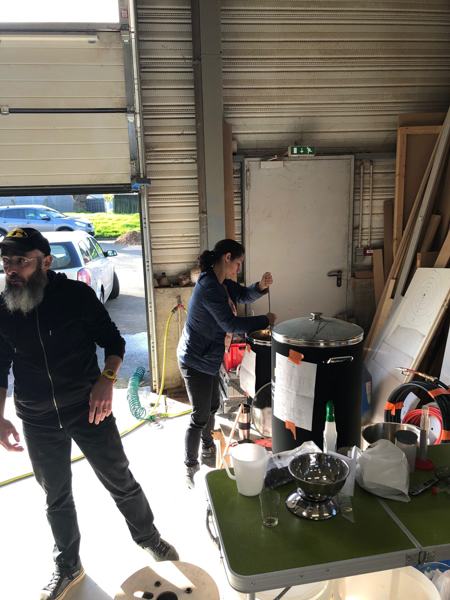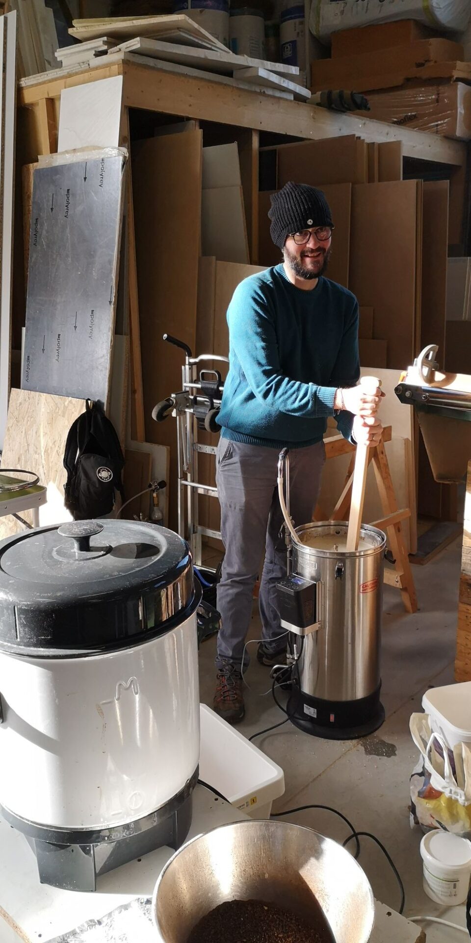 Tôt le matin, Jean-sébastien a mis en route sa pico, rejoint par Ombeline et Pascal ainsi que Samuel et Benoît. Installation du matériel, atelier concassage, mise en chauffe de l’eau ont permis à chacun de lancer l’empâtage de cette bière. Loïc et Jérôme sont venus très vite compléter l’équipe et comme nous avons pu le constater, les équipements étaient très différents, allant de la micro-pico très bricolée en passant par des picos plus élaborés jusqu’à des systèmes tout-en-un type Brewster ou Grainfather.