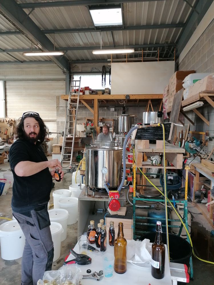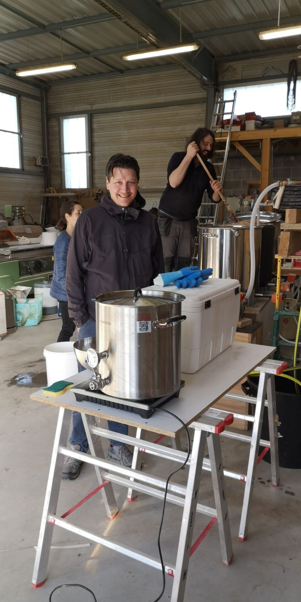 Quelques membres du CRAB sont passés pour découvrir, échanger mais aussi donner un coup de main, merci à eux, pour que tout se passe pour le mieux. La journée a été intense, fatigante et longue mais le résultat est là, enfin la première phase. Pour la matière première, plus de 115kg de malts, environ 400 litres d’eau (hors refroidissement), 30 sachets de levure et 2kg de houblon ont été utilisé!